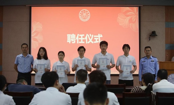 学生工作处副处长刘俊英宣读了第一期学生安全委员骨干“强盾”培养计划名单。徐跃进、厦门市公安局大学路派出所所长曾清勇为学员代表颁发聘任证书。