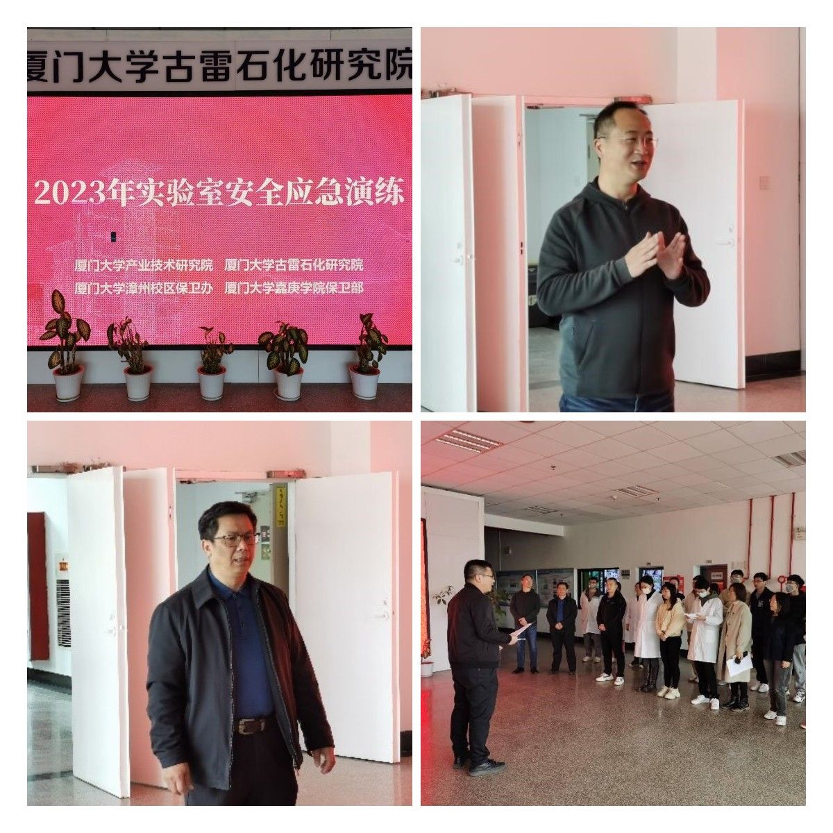 2月22日下午,实验室安全演练活动正式启动。漳州校区保卫办主任江顺在现场致辞讲到,在开学初开展安全应急演练十分必要,希望能通过演练进一步提升师生员工的安全意识和应急处置能力,确保实验室安全。