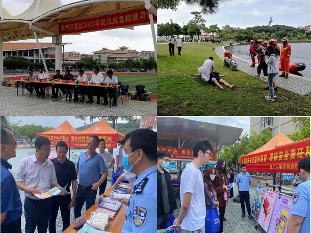 2022年6月是第21个全国“安全生产月”,主题是“遵守安全生产法 当好第一责任人”。校区管委会与嘉庚学院结合校区实际,携手漳州开发区管委会,于6月1日上午先后在北区虎头水库组织人员落水应急救援、在北区南强广场开展安全生产科普宣传活动。漳州开发区管委会副主任蔡志勇、应急管理局局长王东兴、消防救援大队大队长刘剑俊,以及校区管委会副主任余自中、嘉庚学院纪委书记陈东军、嘉庚学院党委副书记王洁松、校区保卫办主任江顺等参加相关活动。