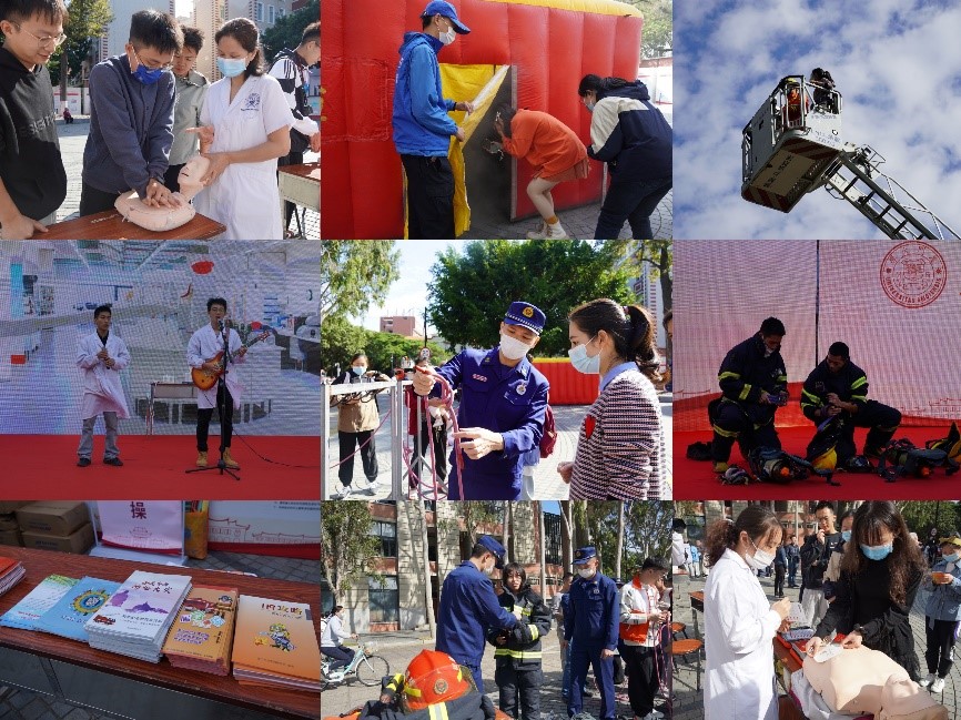 仪式上,由厦港消防救援站指战员和厦门大学海韵学生公寓微型消防站队员带来的“消防专业技能演示”、化学化工学院研究生们带来的原创实验室安全情景剧“实验安全记心间”等精彩表演引得台下观众频频鼓掌。而后“逃生屋模拟逃生演练”“电动自行车燃爆事故案例视频和残骸展示”“实验室安全知识有奖答题互动”“心肺复苏、AED使用等急救技能现场宣传及培训”“云梯车体验”等现场活动更是吸引了众多师生积极参与。