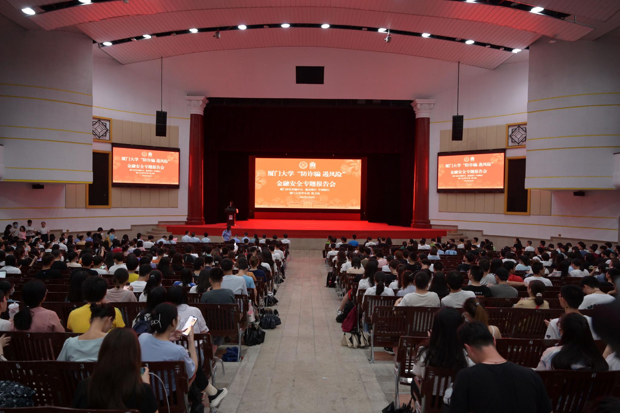本次活动主会场设在思明校区建南大会堂,厦门市公安局刑侦支队五大队教导员章淑娟、中国建设银行厦门市分行网络金融部负责人李政、中国银行厦门市分行消费者权益保护办公室主任孙伟、厦门大学学生工作处处长李峰、副处长许美霞、保卫处副处长林庆斌等相关领导出席活动。同时,翔安校区、漳州校区设直播分会场。活动以线上线下形式举行,各单位学生安全教育指导老师、学生安全委员、班级委员、学生党员、骨干及其他学生代表共计约1600人参加。报告会由学生处管理科科长刘俊英主持。