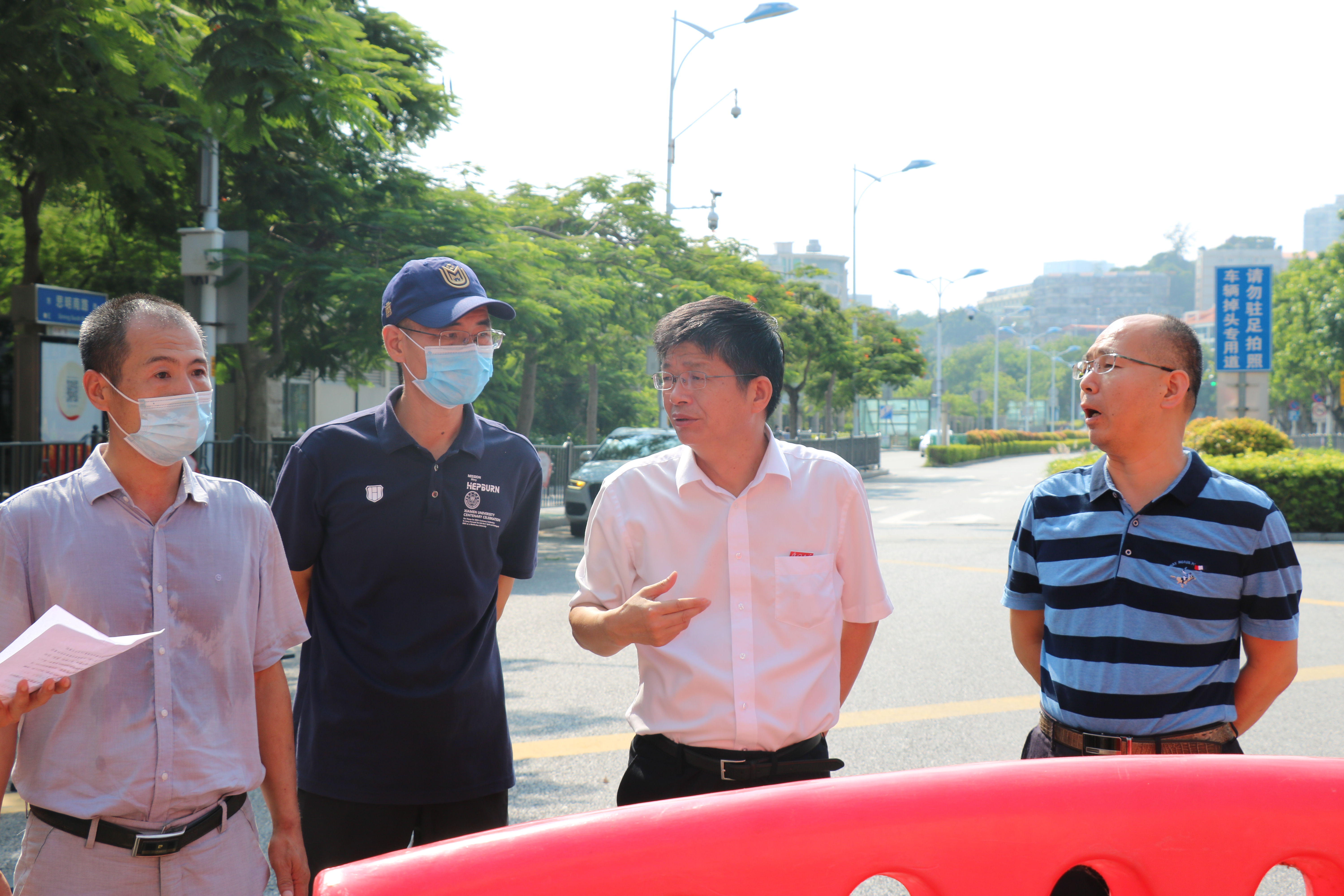 为做好2021年秋季学期开学疫情防控工作,8月27日下午,学校在思明校区开展疫情突发应急处置演练。校党委副书记徐进功,学校疫情防控工作领导小组相关成员单位负责人、部分学院工作人员等参加了演练活动。