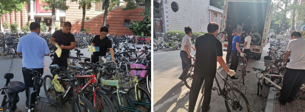 慎之又慎扫描“木马”——废弃无主自行车。为最大限度释放停车空间又最小范围误清有主自行车,保卫处秉持为师生办实事原则,从9月份开始,对疑似废弃自行车开展数量预估和分布区域摸排,确定了清理工作的时间安排、推进路径、组织方式,并且对清理工作量、清理成本进行初步核算。