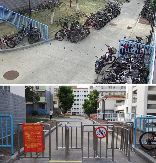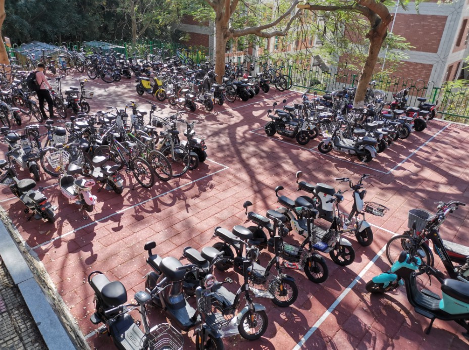 安保力量“1+1”。4月份,学校通过招投标形式外购珠海葆力物业管理有限公司安保服务,负责公共区域和主干道路秩序环境管理。为做好自行车停放秩序治理,整合原有保卫干部和校卫队伍以及新外购安保服务力量两支队伍,建立区域化网格化管理机制,实行定人定岗定职责的“责任田”;率先确定食堂、教学楼、宿舍区等重点区域,痛点、堵点、难点区域为“主战场”,由两支安保队伍发挥示范引领作用,自主规整网格区域内的自行车;在日常和上课、就餐高峰期,加强对师生文明停车开展有针对性的引导,服务做好“引航标”。