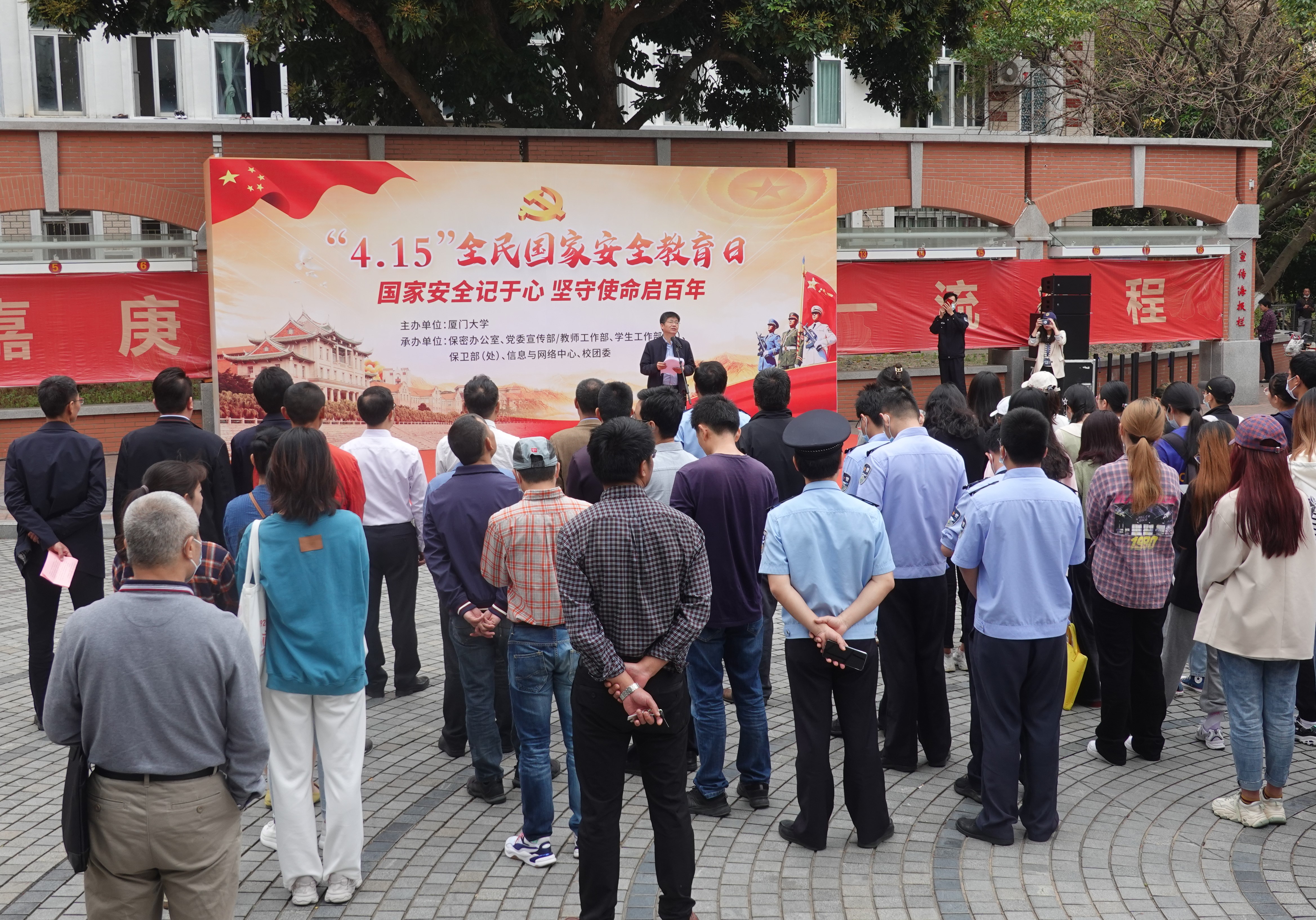 今年的4月15日是第六个全民国家安全教育日。4月14日,2021年厦门大学“4.15”全民国家安全教育日宣传活动启动仪式在三家村广场举行。活动以“国家安全记于心,坚守使命启百年”为主题,旨在引导和推动广大师生深入开展国家安全宣传教育,进一步推动总体国家安全观深入人心,落地生根。校党委副书记徐进功出席启动仪式并讲话。
