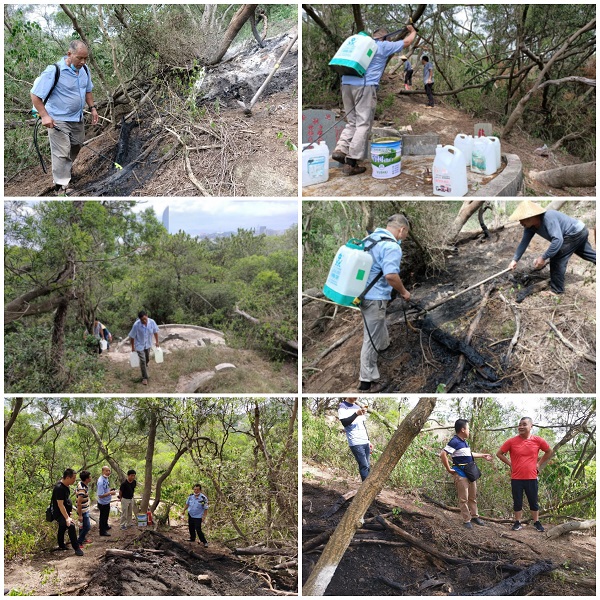 幸好发现得早,绿化保洁部员工训练有素,处置得当,山火才得以迅速扑灭,未酿成大的山林火灾。