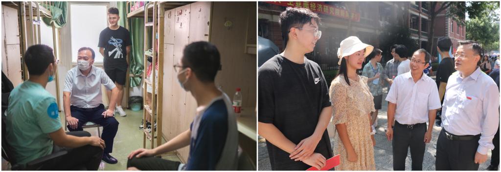9月10日上午,校党委书记张彦、校长张荣带队来到迎新现场,走访了各学院注册点、迎新指挥部、学生公寓园区等地,看望慰问了迎新志愿者和工作人员,向教职工致以节日问候,对他们的辛勤付出表示感谢;看望慰问了刚入住宿舍的新生,与武汉籍新生亲切交谈,详细询问他们来厦的感受、注册得如何、未来有什么计划等,提醒他们在校期间做好个人防护,勉励他们多读书、勤思考、爱运动,在厦大成长成才。