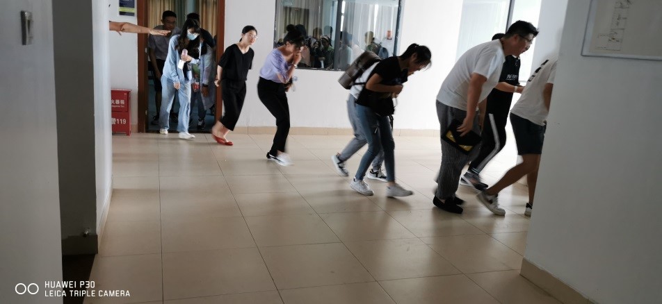 省应急管理讲师、厦门市消防救援支队、思明区消防救援大队培训讲师林乐坦,通过生动的案例及专业的知识,介绍了火灾安全知识、火场逃生技能、快速扑灭初期火灾、灭火器及消防栓的正常使用方法等。随后,现场模拟在实验室发现火情,师生开始了实操训练:弯腰低头、捂住口鼻,快速有序地疏散到庄瑾楼大厅。确认疏散人数无误后,林乐坦再次给大家讲解了灭火要点,然后全场约100名师生员工分四列纵队一一进行灭火实操训练。