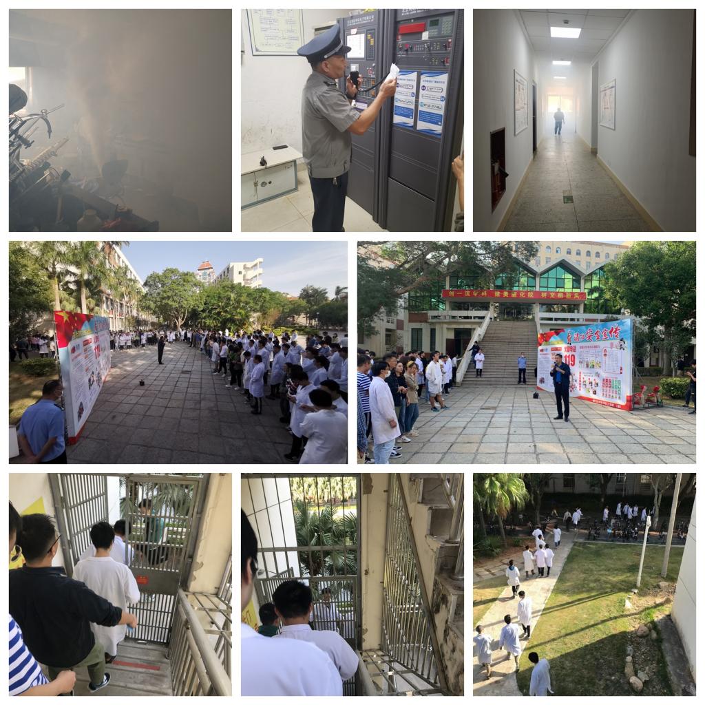 演练模拟场景设计为化学楼北楼502实验室燃烧产生大量浓烟,并触发了烟感警报。物业值班人员在发现消防自动报警系统报警后,立即察看起火实验室。学院迅速启动应急救援疏散预案,物业值班人员迅速拨打火警电话119,义务消防员、教工安全员迅速赶到火场处置“险情”并用消防广播系统通知相关区域人员疏散。化学楼3、4、5层的师生们迅速从东西两侧逃生楼梯紧急疏散,3分钟内撤离到安全地点。