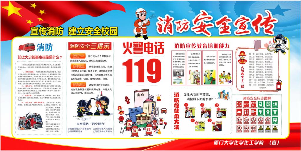 演练前,学院充分利用“119”安全宣传周开展消防安全知识宣传,在演练前向学院师生宣传火灾报警和应急、疏散逃生、灭火方法等消防基础知识,做到宣传全覆盖,确保全体师生都了解消防基础知识。学院安全工作组、教工安全员、物业保安及消防志愿者明确组织分工、明确联系方式、明确时间节点、明确应急准备。学院安全工作组对消防广播、消防器材、消防通道进行安全巡检。
