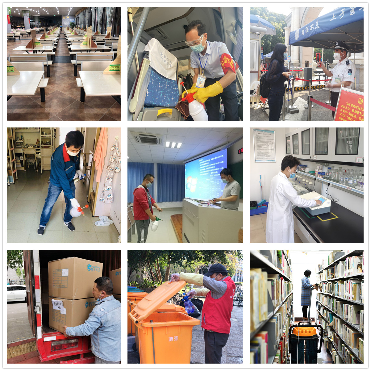 返校前,学校深入开展爱国卫生运动,组织对学生宿舍、教室、实验室、图书馆、运动场所等室内环境、图书设备开展全面卫生清扫及消毒。在校园等露天公共区域,也已进行了卫生大扫除,重点针对校园主干道1275个雨污水井、6座校园公厕、133个垃圾集中点位垃圾桶、各食堂周边排水沟等所有可能滋生病毒和细菌场所,每天进行两次消杀消毒。资产后勤部门和物业携手,对运动场馆、公共教室等重点场所设施设备进行检测防护,保证干净整洁,确保设备运行正常。此外,按照垃圾分类工作的相关要求,持续做好生活垃圾分类工作,尤其是做好口罩等个人防护用品废弃物的分类收集和安全管理工作,设置专用废弃口罩收集桶,引导师生定点投放,最大程度抑制病毒的滋生、传播。