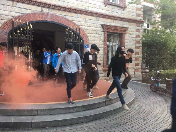 上午7时,一阵急促的警报声响起,滚滚浓烟从芙蓉片区学生宿舍弥漫而出,在老师和宿管工作人员的指引下,同学们用毛巾捂鼻、弯腰低姿快速有序的按疏散路线撤离,五分钟后,所有学生均到达安全区域,迅速集合、清点人数,学生无人受伤,全部安全有序疏散。