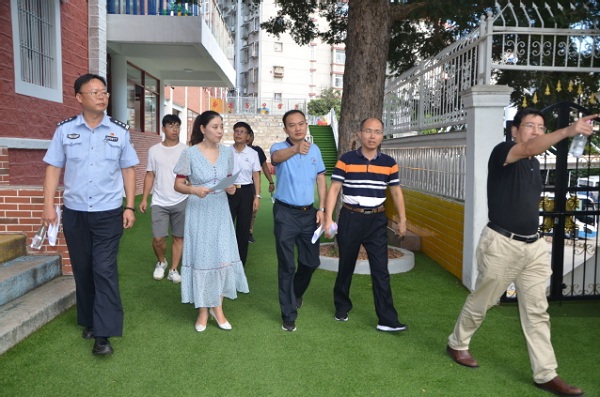 为贯彻落实教育部、公安部联合召开的全国学校安全工作紧急电视电话会议精神,9月6日下午,学校对厦大幼儿园开展安全专项检查。保卫处副处长陈锦华、资产处副处长王沈扬、后勤集团副总经理刘君彬、大学路派出所副所长薛玉明等相关单位负责人参加检查。