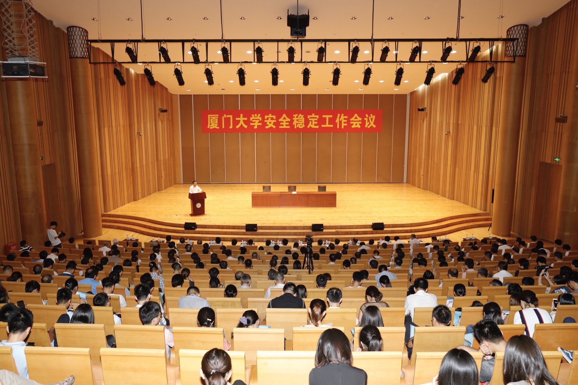 为贯彻落实党代会精神,推进平安校园、美好校园建设,7月20日下午,我校在科学艺术中心报告厅召开安全稳定工作会议,分析形势、部署工作。厦门市委常委、政法委书记李伟华,厦门市公安局党委副书记、巡视员范锦昌,我校党委书记张彦,校长张荣,党委副书记、纪委书记赖虹凯,党委副书记林东伟出席会议。会议由党委常委邓朝晖主持。