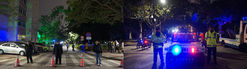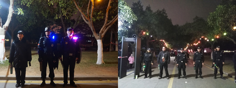 保卫队伍可不仅仅是我们保卫干部队员,还有大学路派出所的警察蜀黍、消防中队的战士、各学院团委书记、学生安保志愿者、国防生哥哥们。这些卫士共同组建安全防线,守卫跨年平安。