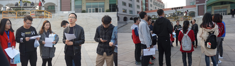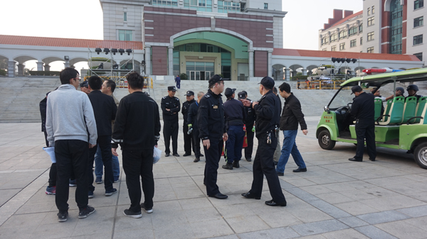 下午四点,各方力量开始进行预案演练,为各种可能性的发生做好准备。我们保卫处的干部也给学生安保志愿者讲安保须知,让学生志愿者们清楚岗位职责,遇到突发事件的应急处置等。