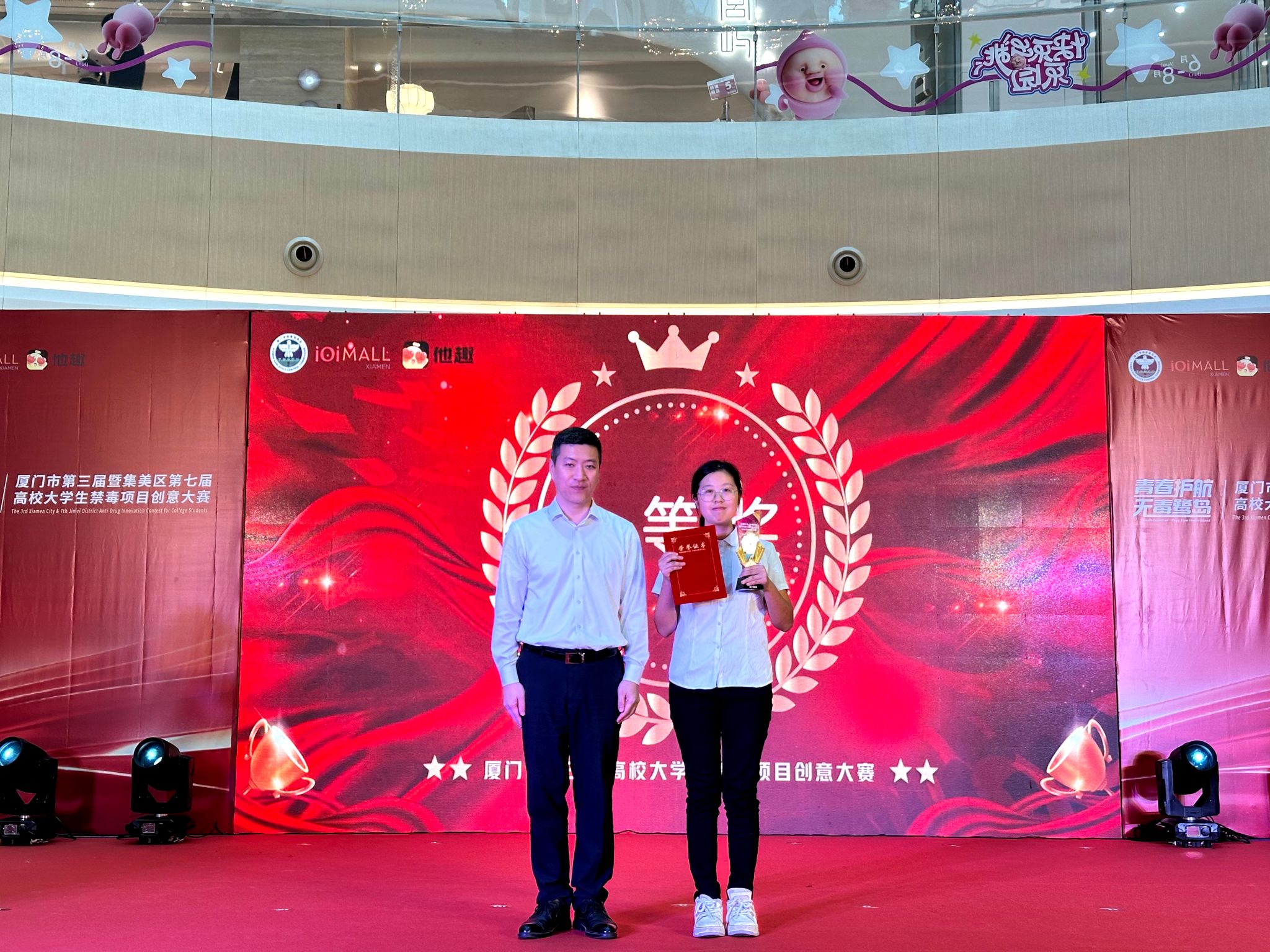 在市级决赛中,厦门大学创意创新学院朱星芸团队打造的《致敬“最美禁毒人”》项目以跨时空对话的艺术手法,串联起禁毒精神的传承脉络,配套开发的系列文创产品实现禁毒宣传"可视化、可触达",摘得大赛桂冠。法学院《禁毒之星·种子计划》志愿者项目凭借“学生主导、教师指导”的创新模式,构建起覆盖校园的禁毒宣教网络,荣获二等奖。创意创新学院任静仪团队作品《青春有你,绝不独行》通过沉浸式互动体验设计,获评二等奖;李锦佩团队《厦小卫》项目以智能化宣教平台创新,收获三等奖。