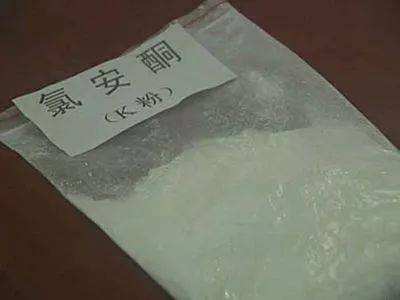 氯胺酮,白色结晶性粉末,无臭,易溶于水,由于英文名称以K打头,也被称为“K粉”。吸食氯胺酮主要是在歌舞娱乐场所,以群居为主,将氯胺酮粉面溶于啤酒、饮料中或用吸管鼻吸,产生兴奋麻醉感觉。有很强的依赖性,服用后会产生意识与感觉的分离状态,导致神经中毒反应、幻觉和精神分裂症状等现象。