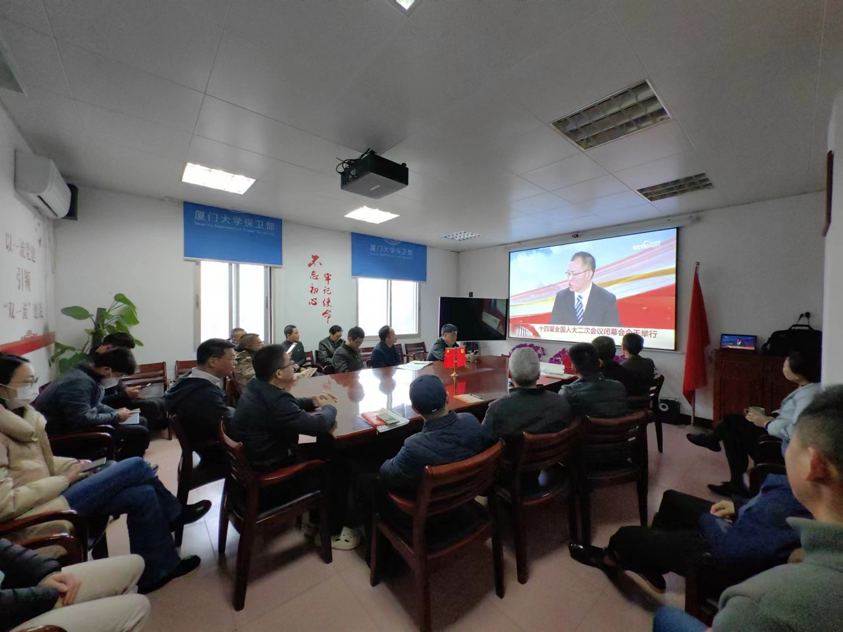为深入学习领会全国两会精神,3月11日,保卫部(处)党支部组织开展集中理论学习,传达学习十四届全国人大二次会议和全国政协十四届二次会议精神。