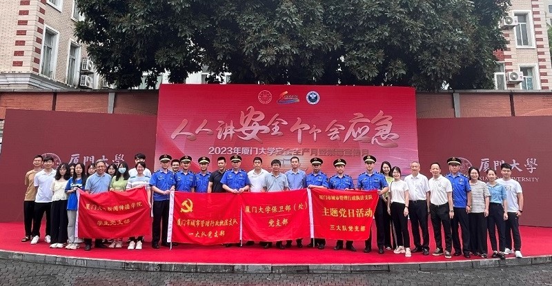 今年 6 月是第 22 个全国“安全生产月”,今年的主题是“人人讲安全、个个会应急”,在今年的6月16日上午,学校与厦门市禁毒办、城市管理行政执法局、思明巡特警反恐大队、大学路派出所、思明交警碧山中队、厦港消防救援站等多个单位共同在三家村学生活动广场举办2023年厦门大学安全生产月暨禁毒宣传月启动仪式。并以此活动为契机,保卫部(处)党支部、新闻传播学院传播学系本科生党支部、厦门市城市管理行政执法局一大队、三大队党支部共同开展了安全生产主题党日活动。
