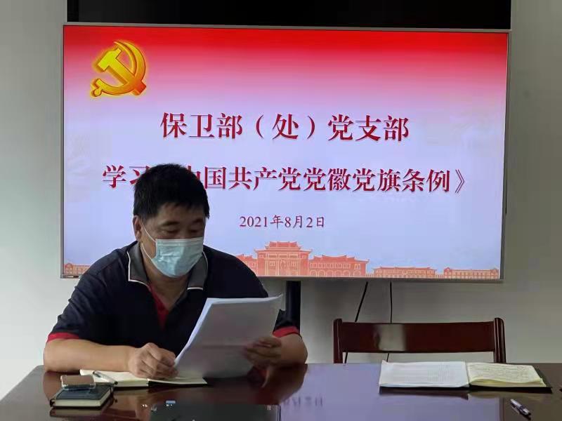 为进一步提高保卫部(处)全体党员政治站位,进一步锤炼党员干部政治品质,筑牢信仰之基。8月2日,保卫部(处)党支部认真组织全体党员干部集中学习中共中央印发的《中国共产党党徽党旗条例》(以下简称《条例》)。