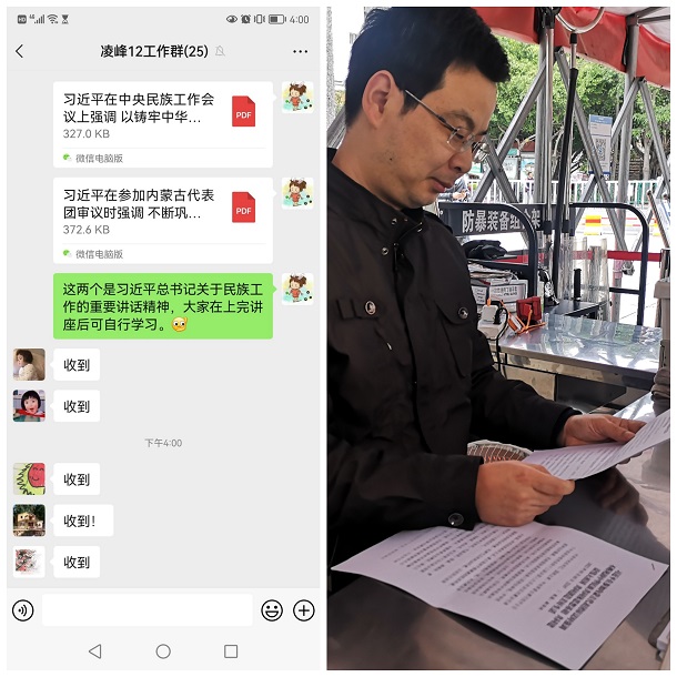 线上学习完后,保卫部(处)各点位干部通过在点位上自学习近平总书记在十三届全国人大五次会议内蒙古代表团审议时发表的重要讲话以及习近平在中央民族工作会议上的重要讲话,并结合习近平总书记致厦门大学建校100周年的贺信精神,深刻领会我们党关于加强和改进民族工作的重要思想,深刻认识到铸牢中华民族共同体意识的历史必然性、极端重要性和现实针对性。大家结合疫情防控工作,深刻认识到要将习近平民族工作思想贯穿到安全保卫工作中,牢固树立正确的国家观、民族观,不断将铸牢中华民族共同体意识这条主线转化为化解校园风险隐患的实际力量,推动学校安全保卫工作的高质量发展。