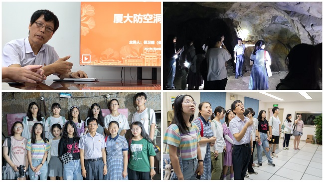 仪式结束后,保卫部(处)陈安鹭老师以“厦大防空洞历史”为题为师生党员作专题党课,并带领大家进入防空洞和保卫部监控室进行实地参观考察。在陈老师的讲述中,大家重温了昔日炮火连天环境下厦大人“一手捧着书、一手扛着枪”的艰苦岁月,对“英雄大学”有了更深入的了解,对“四种精神”有了更深刻的感悟。大家纷纷表示,要用好所学知识,创作出优秀作品,把厦大防空洞的故事传播给全校师生,打造厦大新的党史校史学习教育基地。