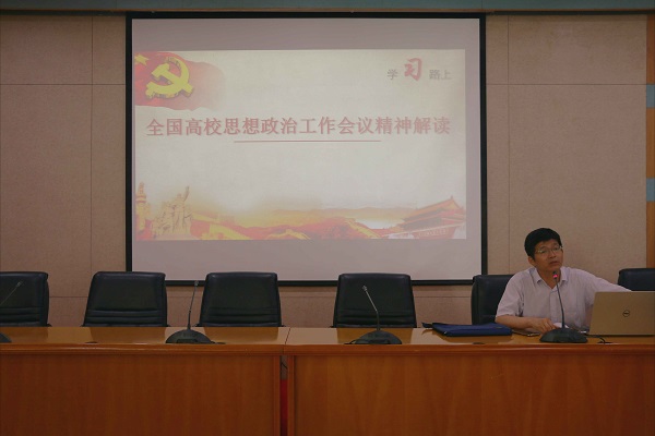 徐进功教授以“全国高校思想政治工作会议精神解读”为题,向支部党员分享了他的学习体会。徐进功教授首先从国家发展及民族复兴的角度阐述了高等教育的重要性,并指出人才培养的目的和意义。他认为,培养人才要坚持以马克思主义为指导,培养德才兼备,全面发展的人才,而做好人才培养关键是要做好高校的思想政治工作。对于如何做好高校思想政治工作,他指出要做到因时而化、因时而进、因势而新,切实加强高校师德师风建设,加强党委对学校工作实行全面领导,深入贯彻社会主义核心价值观等等。
